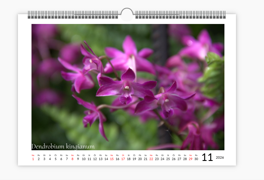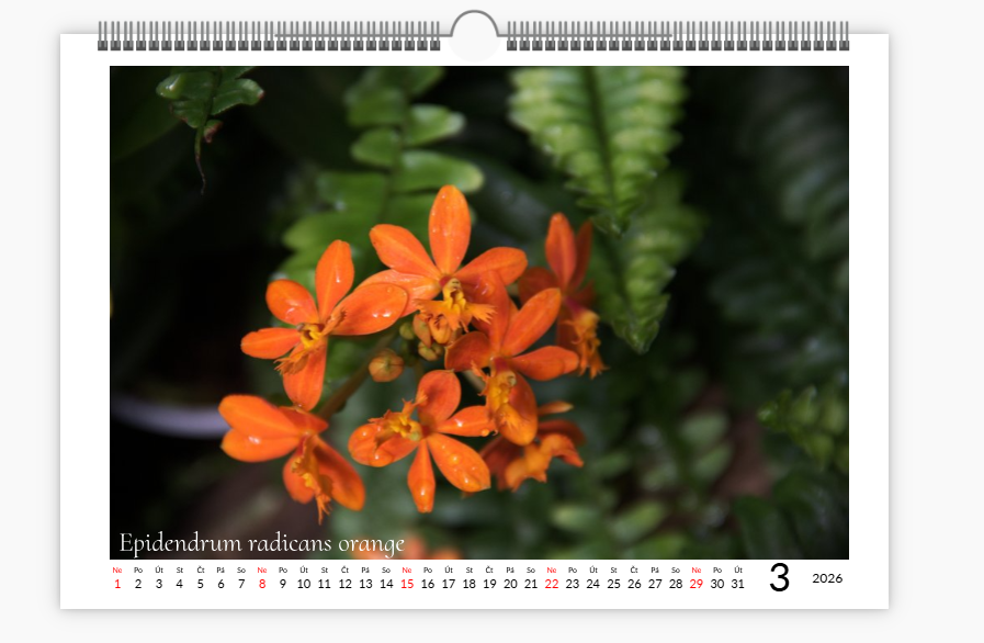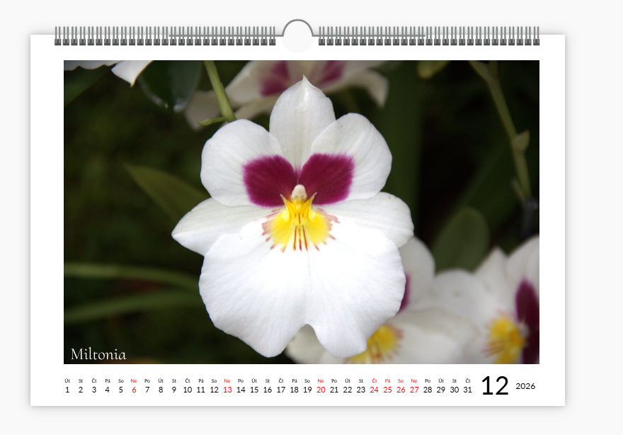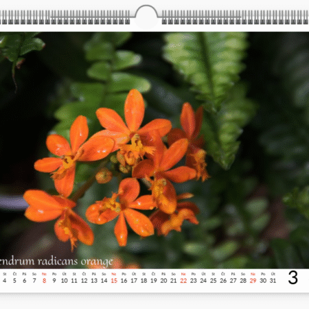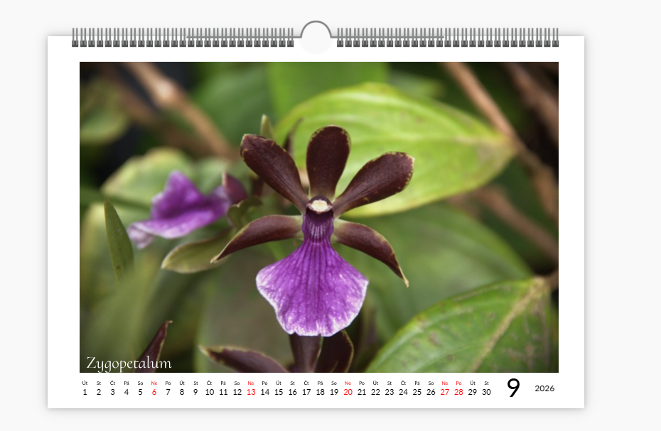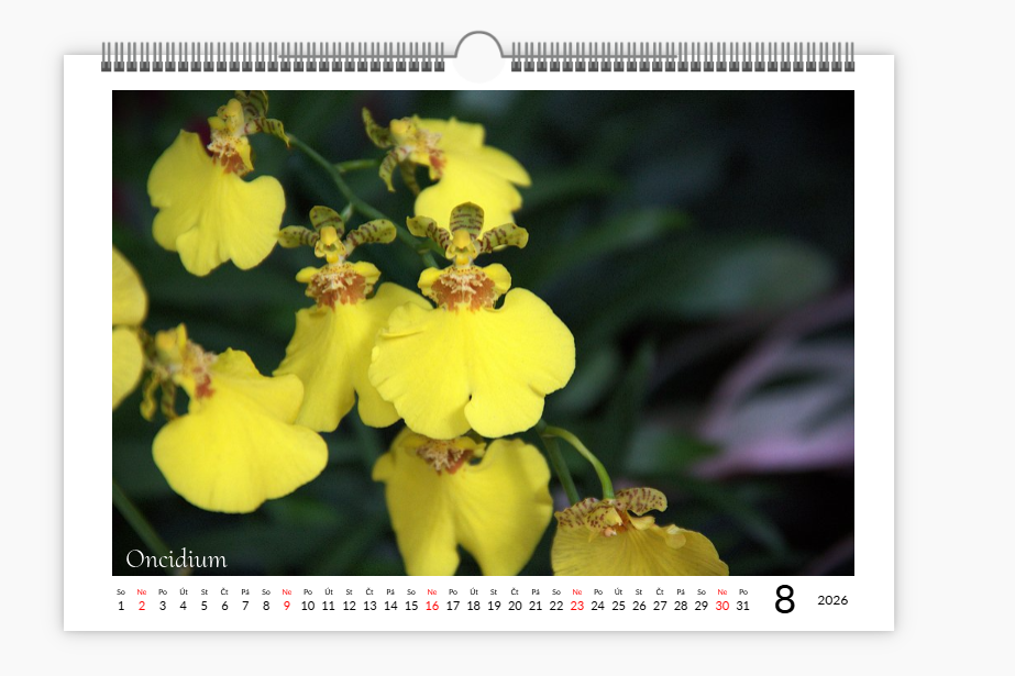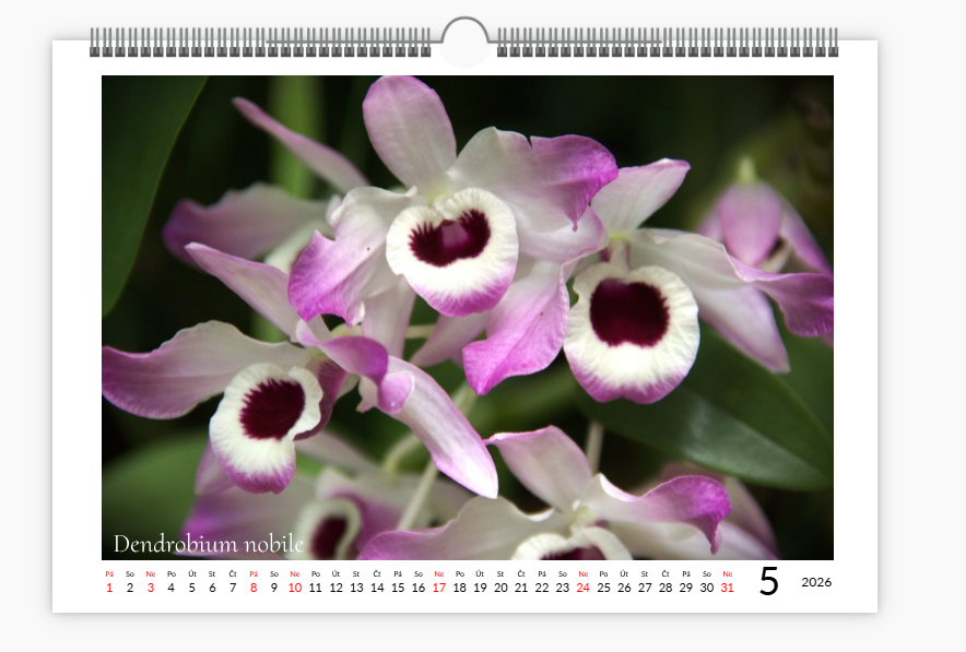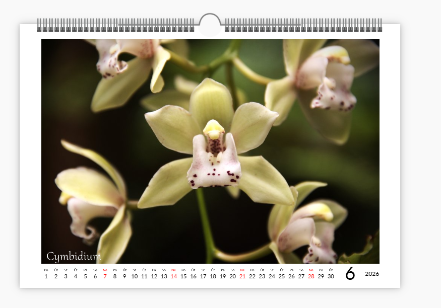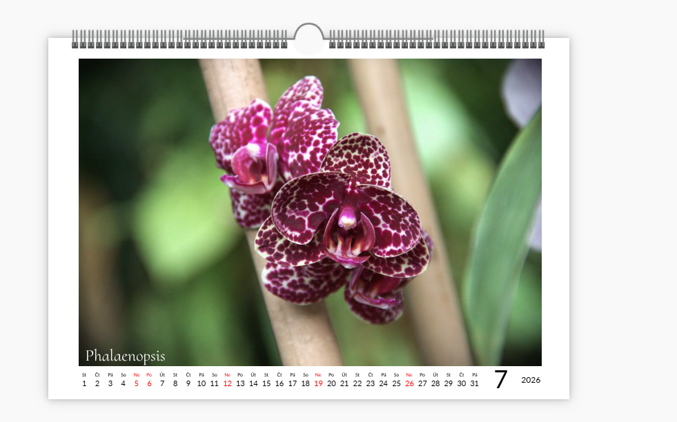 Objevte kouzlo orchidejí v originálním nástěnném kalendáři s autorskými fotografiemi. Každý měsíc vás potěší jiný druh či hybrid – od exotických Zygopetalum a Miltonií, přes něžné Phalaenopsis a Oncidia, až po elegantní Cymbidia či mezirodové křížence Cambrie. Fotografie jsem fotila v rodinné sbírce a na prestižní výstavě orchidejí ve skleníku Fata Morgana Botanické zahrady v Praze.